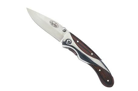 Item 12860: Sheffield Ozark Folding Pocket Knife Features: 2 1/2 inch stainless steel drop point blade 3 1/2 inch hardwood and stainless steel handle Ambidextrous thumb studs Liner lock Pocket clip Weighs 3.5 oz 6