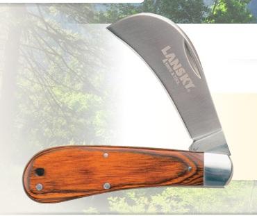 Recognizing the Hawkbill's resurgence in popularity, Lansky's created this appealing knife. The 420 stainless steel hawkbill shaped blade is excellent for carving and cutting, as it's curved blade will hug branches, rope and other curved surfaces. Stainless steel bolsters and pins with polished laminated hardwood scales add a classic touch.