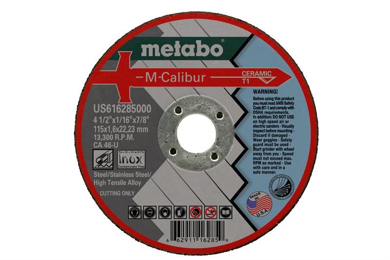 The Metabo M-Calibur 4-1/2" x .045" x 7/8" Type 1 Cut-Off Wheel is a high-performance ceramic abrasive wheel designed for cutting hardened metals, stainless steels, high tensile alloys, hastelloys, inconel, and titanium. Featuring 100% ceramic grains and bonds free of chlorine, sulfur, and iron, this wheel ensures clean and precise cuts while maintaining durability. With a maximum operating speed of 13,300 RPM, this cut-off wheel provides superior control, efficiency, and reliability.