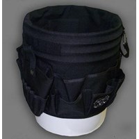 Fits any standard 5 gallon bucket. Over-sized storage pockets with interior loop which keeps hammer in place and within reach. Built-in drill holster with drill bit pockets.