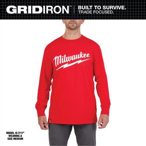 milwaukee 608R 2X heavy duty tee long sleeve logo red 2x | 48WS