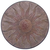 Apollo is the greek sun god, bringing life-giving heat and light to earth. This sun is set inside a 3 ft. diameter stamp. The background texture is Italian Slate. Use our reactive stains or our new easy-to-use water-based acrylic stains, EZ-Accent. Add this beautifully carved stamp to any home or business for a real "sizzling" look. Proline also offers this same look as a skin, without the circle. See "Flaming Sun". If you love sun patterns, also check out our brand new Seamless Design, Spiral Sun.