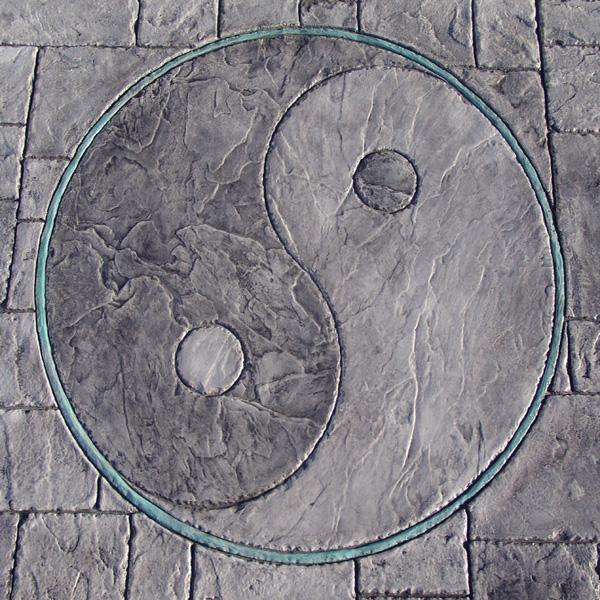 The Yin Yang symbolizes heaven and earth or the opposing but complementary forces said to be found in the universe. This 4 ft. diameter Medallion is a combination of Roman Slate and Italian Slate. This stamp is easy to color using our new EZ-Accent water-based stain.