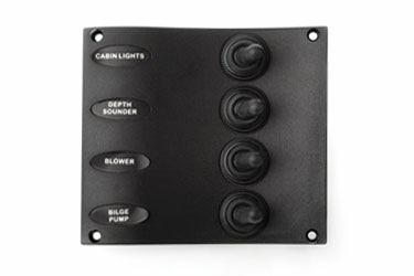 Toggle Switch Panel includes four switches rated at 15A 12 VDC. Panel is water resistant.