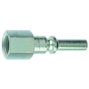 1/4" Series Lincoln Long Nose Type "A". Plated steel couplers have hardened steel balls and stainless steel springs. Coupler plugs are heat treated to reduce wear on critical mating surfaces. The Lincoln Series of plugs are easily identified by the long plug end. The couplers are identified with one narrow and one wide groove on the sleeve. Couplers interchange with Lincoln as well as units produced by other manufacturers. Maximum working pressure 300 PSI.