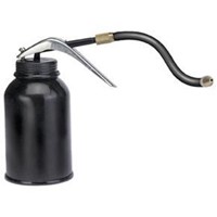 Drawn steel bodies. Rugged epoxy finish resists rust. 6 oz. size available with or without base holder. Rigid spouts have .15" diameter ledge-cone machined tips to lift oil filler dust caps. Note: rigid spouts are non-detachable. All flex spouts are zinc plated and detachable with a base thread of 1/4" - 28. 8 oz. capcity pistol oiler. Easy one-hand operation. Equipped with 6" flexible spout.