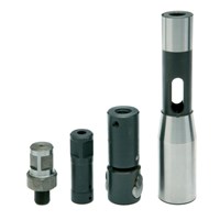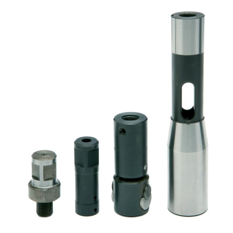 We have a range of various adaptors for use with Powerbor machines and cutters.The 3/4\" Weldon to 1/2\" x 20 UN Chuck adaptor allows a 1/2\" x 20 threaded drill chuck to be quickly placed into any 3/4\" Weldon arbor to allow the used of twist drills and plain shank cutters.The 3/4\" Weldon to 1/4\" female hexagon allows the machine to be converted to accept any 1/4\" hex shank cutter.The 1/2\" x 20 UN threaded Tap Chuck allows the PB320 Combi to use standard DIN taps (Square drive).The R8 to MT3 adaptor (used with our MT3 to 3/4\" Arbor) allows Powerbor cutters to be used in a Bridgeport type milling machine
