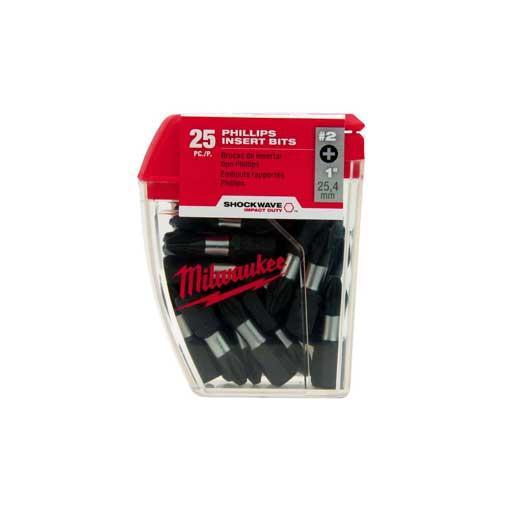 Milwaukee #2 Phillips Shockwave 1'' Insert Bit Contractor Pack 48-32-4604