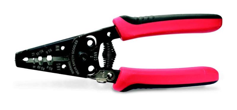 Cuts and strips RG-59 and RG-6 coaxial cable.