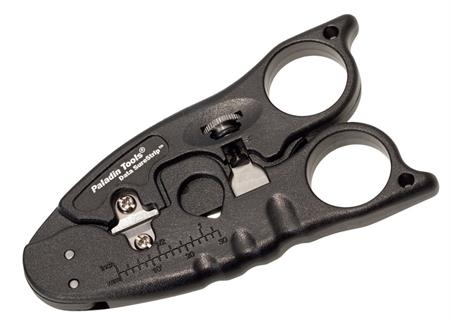 Cuts and strips multiple cable types: 4-, 6- and 8-conductor flat satin cables., 4-, 6- and 8-conductor UTP/STP data cables., 25-pair UTP/STPdata and telephone cables