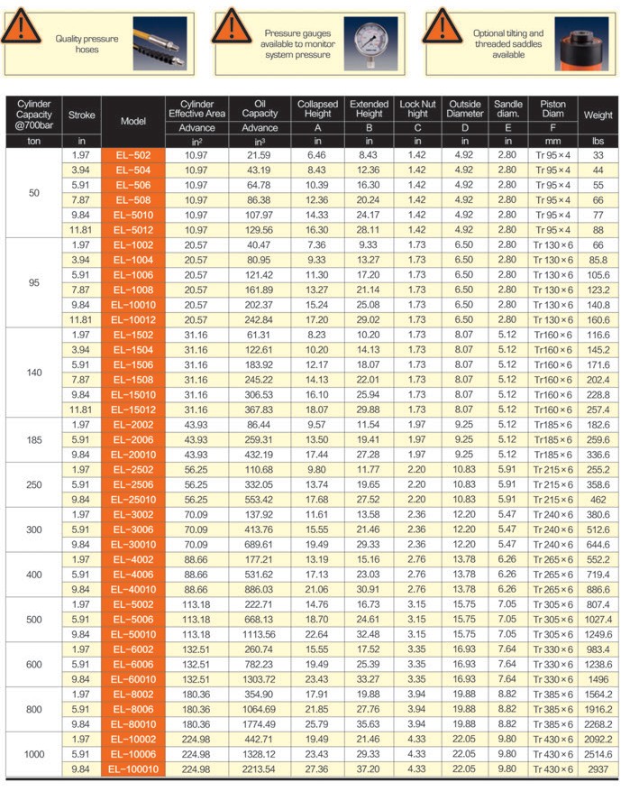Capacity 50-1000 Tonne, Single Acting, Lock Nut, Load Return.