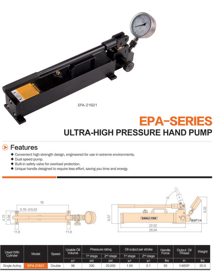 eagle pro EPA 21621 epa series ultra high pressure hand pump | 48WS