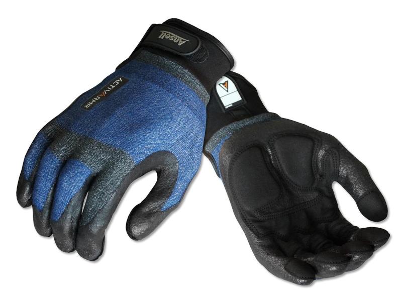 The Ansell ActivArmr 97-005 Kevlar plumber glove, X-Large, is knit from Kevlar fiber, also known as aramid fiber, to provide better cut protection than standard plumber gloves, and it has a foam nitrile coating on the palm and fingertips for gripping piping and other materials and protecting against burns from warm pipes. Ansell's knitted variable stitch design (KVSD) provides a barehanded feeling and breathability. The cuff has an adjustable wrist closure with pull tab for comfort and an ID nameplate on the inner cuff for personal identification. This glove meets American National Standards Institute (ANSI) and International Safety Equipment Association (ISEA) 105-2005 performance rating standards for level 2 cut resistance. It is suitable for use in laying, fitting, or installing pipe, and in plumbing maintenance and repair applications, among others. Work gloves help protect the hands, can cover the wrists, and sometimes extend to cover part, or all, of the arm. Work gloves are typically constructed from leather or heavy cotton and are suitable for use in construction, mechanical, landscaping, and do-it-yourself applications to help protect against minor cuts and abrasions. Work gloves for use in manufacturing and construction industries can be made of woven, high-strength synthetic fiber to resist cuts from heavy machinery and withstand high levels of heat without melting. Work gloves may also be made of, or include, flame retardant material for use in welding and other heavy-duty applications. Ansell manufactures surgical, examination, industrial, and household gloves, as well as protective clothing. The company, founded in 1905, is headquartered in Red Bank, NJ.