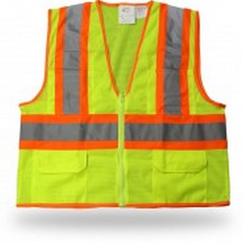 Chest Pocket & 2 Lower Flap Pockets With Zipper Class II Poly-Mesh Fluorescent Green Safety Vest Reflective & Hi-Vis Tape On Front & Back Zip Closure