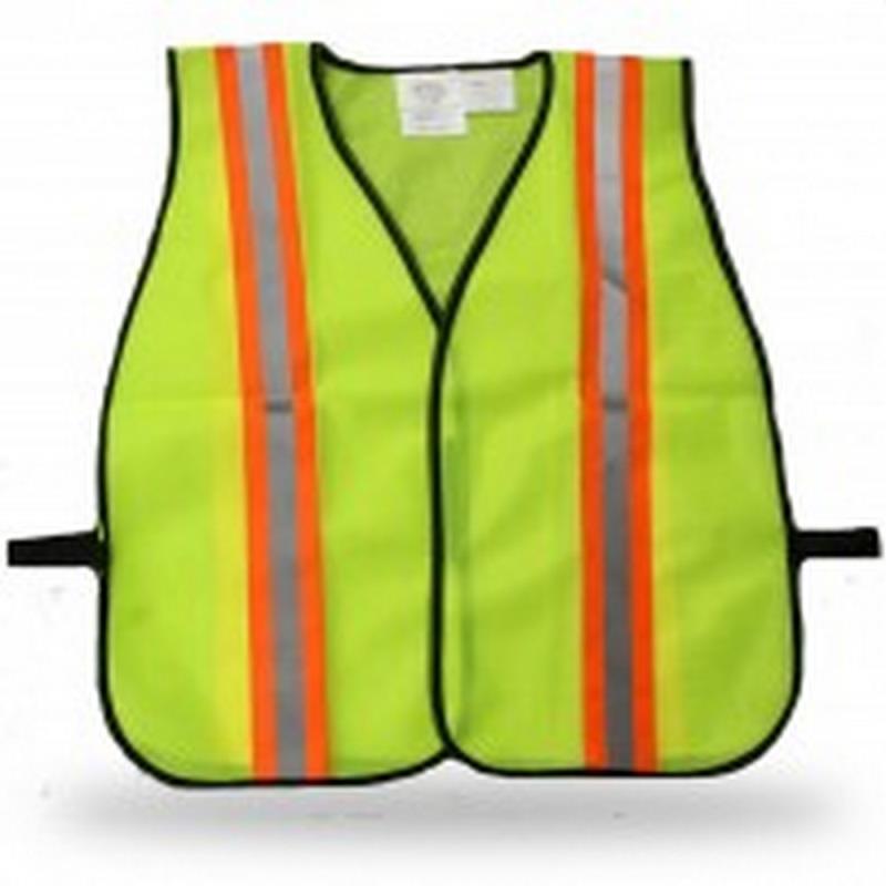 Break-Away Closure Economy Polyester Fluorescent Green Safety Vest Hi-Vis Reflective Tape On Front & Back