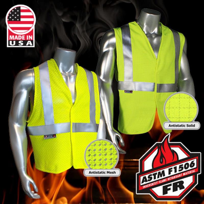 Radians' Anti-Static Modacrylic FR safety vest is intended for prevention of high visibility and FR hazards that also require anti-static resistance. Anti static properties are enhanced utilizing GlenGuard® Trilobal Carbon Fiber technology. Typical applications would be environments with flammable vapors, such as transferring flammable liquids, or other work environments that contain a flammable atmosphere.