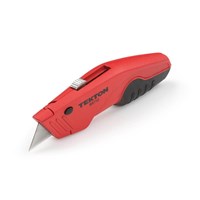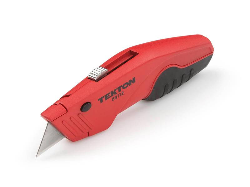 To control cutting depth and prevent damage to underlying surfaces, the retractable blade locks in three different cutting positions.