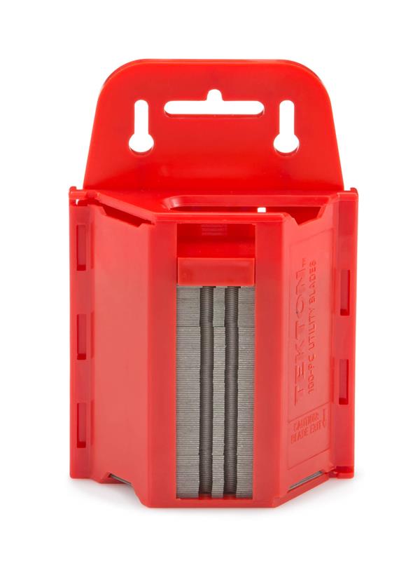 Made of SK5 spring steel (.024 in.), TEKTON Utility Knife Blades are the perfect general-purpose blades for cutting paper, cardboard, plastic sheeting, vinyl, and drywall. The convenient, compact, one-at-a-time dispenser keeps blades organized and protected until you need them. These standard-duty, universal replacement blades fit most utility knives, so you can always have a sharp, new cutting edge at the ready.