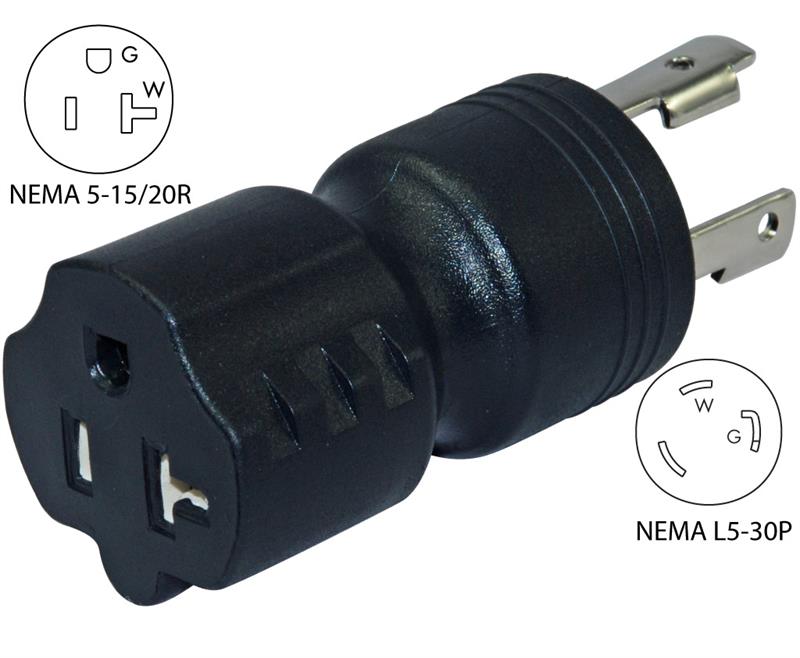 UNO Generator Locking Adapter, 30A 125V to 15A/20A 125V, NEMA L5-30P to NEMA 5-15/20R, Comparable with Marinco 81A.