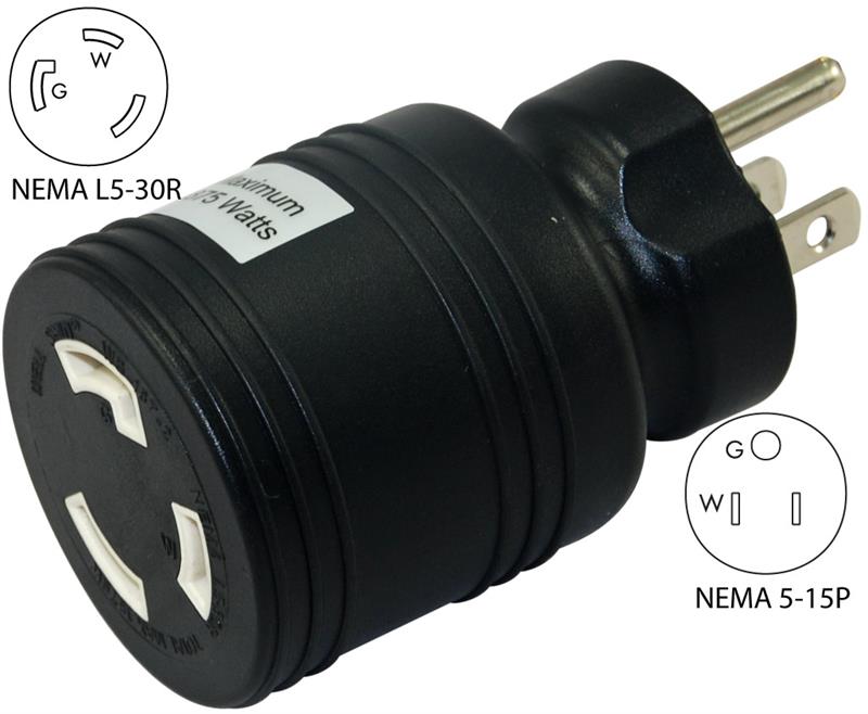 Comparable with Marinco 83A, NEMA 5-15P to NEMA L5-30R