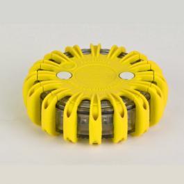 Color: Yellow shell, Amber LED lighting Unit Size: 4.25" Diameter, 1.25"H External Power: Uses 2AAA no-leak, replaceable CR-123 Lithium battery (included) Battery Life: Up to 150 hours Flash Patterns: 10 flash patterns or solid on Unit Weight: 7 oz Shipping Weight: