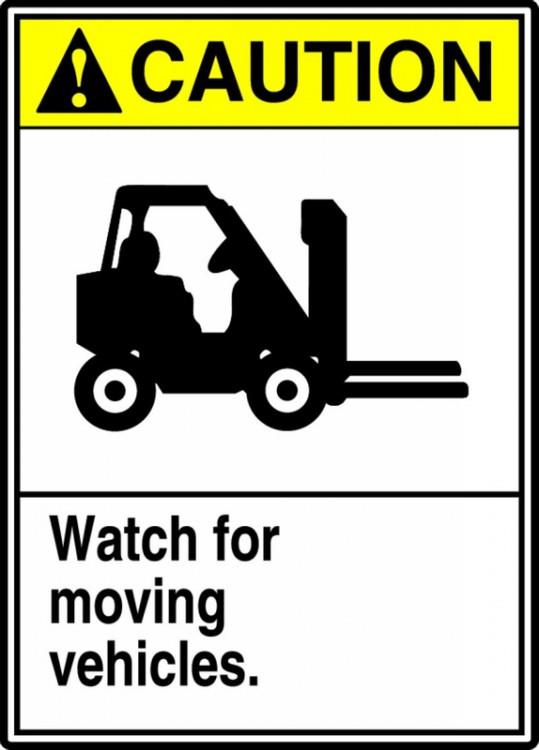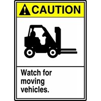 ANSI Caution Safety Sign: Watch For Moving Vehicles