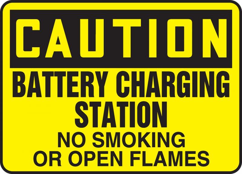OSHA Caution Safety Sign: Battery Charging Station No Smoking or Open Flames