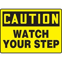 Cautions workers to beware of their surroundings so as not to misstep and fall