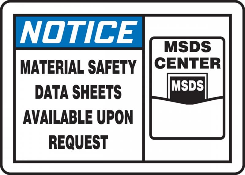 OSHA Notice Safety Sign: Material Safety Data Sheets Available Upon Request