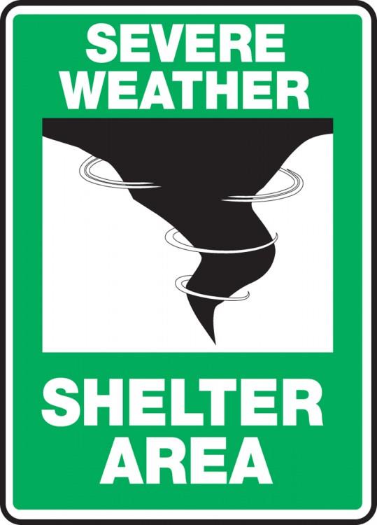Severe Weather Safety Sign: Severe Weather - Shelter Area- Emergency Shelter Signs