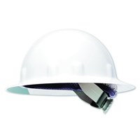 Fibre-Metal E1RW01A000 White Full Brim Hard Hat with Ratchet Suspension is the exclusive smooth crown design contains a technically advanced suspension with eight load bearing points to stabilize and balance the hard hat during everyday wear. On impact, the SuperEight impact energy control system dissipates force by reducing it to smaller increments and spreading it over a greater area. Full brim adds an extra margin of protection from hazardous sun rays and hazardous substances falling onto the neck and shoulders.