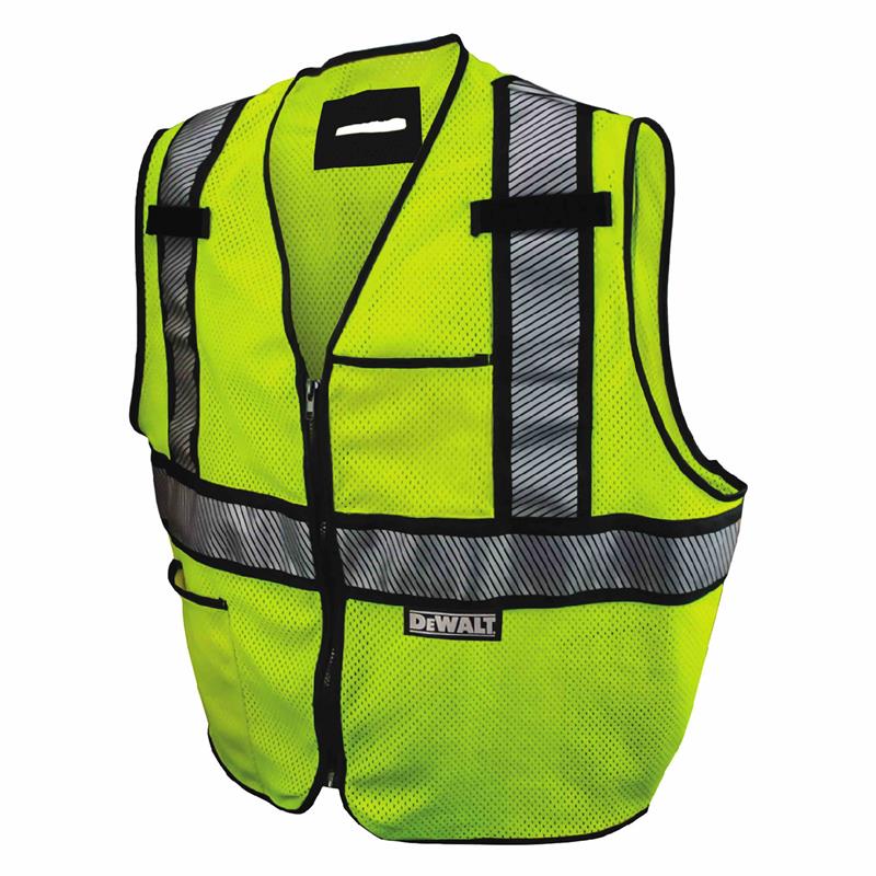 The DEWALT DSV971 Class 2 modacrylic FR mesh vest will help protect workers with a brand name they know and trust. The DSV971 is built in the USA with global materials to provide Guaranteed Tough™ protection. The DEWALT DSV971 offers flame resistant properties required by ANSI 107-2010, as well as certified background and reflective material. Meets ASTM F1506 standards with an ARC rating of 5.1 cal/CM2.