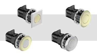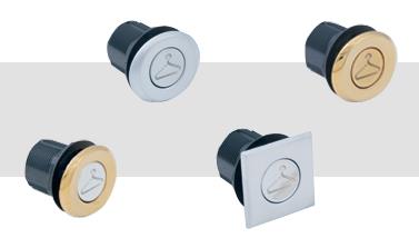 MP Pulls are available with several flange shapes and with multiple chrome- or brass-plated finishes to complement virtually any decor. Overall polished look and metal actuation knob create a positive impression and a solid feel of quality