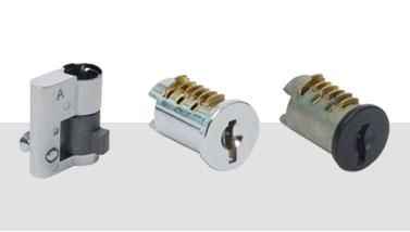 Die-cast zinc lock plug construction provides a durable housing for a brass disc-tumbler lock design. Lock plugs are installed without any special tools and removed using a special key. Common lock-plug configuration reduces inventory requirements, allows on-site customization and simplifies the ability to assign common key codes across multiple latch body styles.