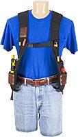 Quick disconnect 3" wide leather beltingaccepts anytool bag with a tunnel loop up to 8.5" across. Create a custom rig to fit your specific work habits and needs. You may remove your bags from the SuspendaVest for finish work or work in tight spaces. Give your body a break, alternate with this belt free system.