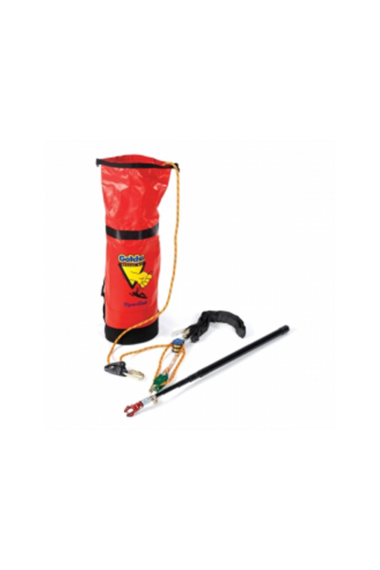 The Guardian Fall Protection Gotcha Rescue Kit offers a unique solution to the problems faced by those who work at heights while using personal fall protection equipment. While most rescue equipment available on the market is designed for falls at extreme heights or specialized situations, the Gotcha Kit is designed for workers who use more common fall protection equipment. As is the case with all rescues, a prompt recovery of the fallen worker is essential. This kit works effectively with either conscious or unconscious victims, allows a single rescuer to carry out the rescue from a point of safety, and provides the option of either lowering the fallen worker to the next lowest level, or raising them back up to the nearest point of safety. It is suitable for the rescue of workers using either lanyards or self-retracting lifelines. To perform a rescue, the rescuer must have specific rescue training; consider the Guardian Fall Protection series of training classes if additional training is needed.