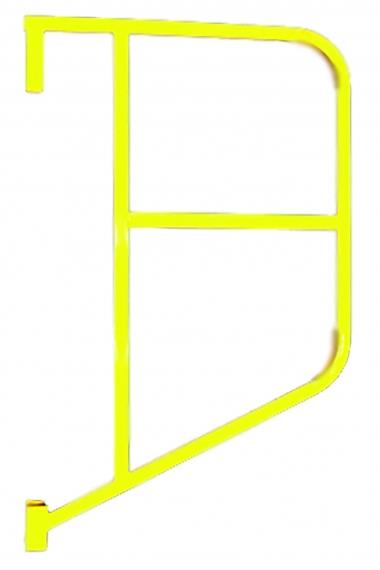 The Guardian Fall Protection End Rail is a component of the Stacker Bracket System which functions to provide a safe and separate hanging scaffolding system around the edge of a fall hazard, such as a rooftop. The End Rail serves to eliminate fall hazards at all Stacker Bracket System termination points. Composed of powder-coated steel, it is supremely durable and weather resistant.
