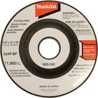 Makita 4-1/2" Abrasive Grinding Wheels feature an innovative grain structure engineered for optimum performance, efficient material removal and longer wheel life. These type 27 wheels are constructed of high quality aluminum oxide abrasive grains for increased performance and added durability. These wheels are designed to be used on most 4-1/2" Angle Grinders for general grinding of ferrous metals.