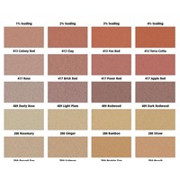 Solomon ColorFlo Liquid is an integral iron oxide pigment generally used to color ready-mix concrete, but can be used to pigment any cementitious material. Color is sold by the yard for 6 sack mixes (average 3500psi). For other mix designs please contact us to order. Color available at loading rates from 1% (lighter, cheaper) to 4% (intense, more expensive.) Loading rate noted at the top of each column on the chart. *Colors as viewed on monitors or individual printers are NOT accurate. Please use web-ready color cards for general color reference only.