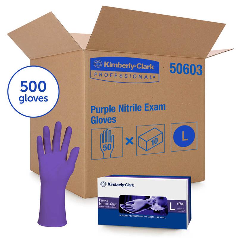 KIMBERLY CLARK 50603 LARGE PURPLE NITRILE XTRA EXAM GLOVES 50/BX 10BX/