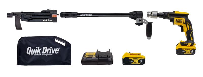 The Quik Drive PRO200SG2 Cordless Multi-Purpose System is a complete auto-feed screw driving tool powered by a 2000 rpm, 20V cordless DeWalt® brushless driver motor with adjustable torque. Eliminate the need for cords, compressors and generators to run with this best-in-class, ergonomic fastening system. Subfloor installations are fast and easy using this lightweight, portable Quik Drive system. The cordless DeWalt driver and lightweight extension allow stand-up driving, making for a fast, ergonomic and less fatiguing installation.
