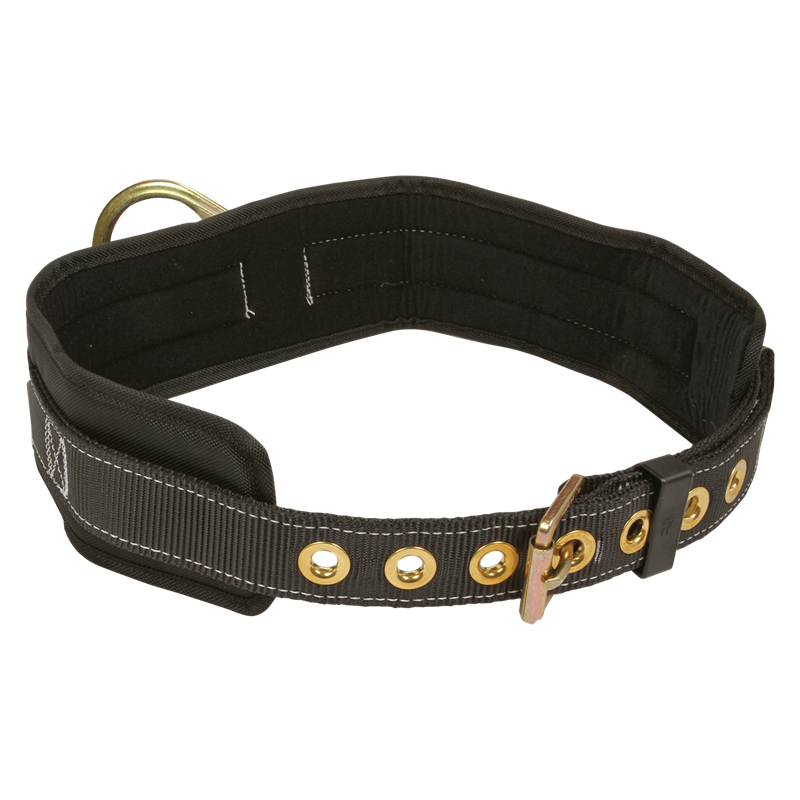 Features 4" x 25" bonded waist support positioning pad with tricot lining and PU foam construction
