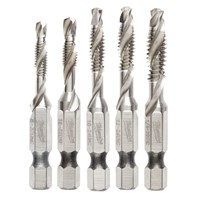 Milwaukee® SHOCKWAVE™ 5 pc. SAE impact drill tap set drills and taps at the same time. The bits are intended for use in up to 1/4 in. metal. The laser etched size allows for easy size identification. The bit is design for use in impact drivers & drill driver.