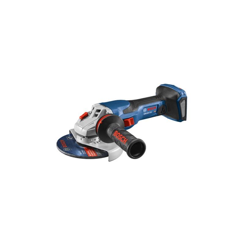 The Bosch GWS18V-13CN18V Spitfire Connected-Ready 5 – 6 In. Angle Grinder with Slide Switch delivers the ultimate combination of performance, control and power in a cordless grinder. This tool is part of the PROFACTOR System, which pairs BITURBO Brushless Technology with a CORE18V PROFACTOR battery. BITURBO Brushless Technology is a high-performance motor and drive-train system designed to deliver power comparable to high-demand corded tools. It features connectivity (module sold separately) to a connected device via the Bosch Toolbox App, to customize settings and receive detailed feedback. The grinder includes other advanced electronics such as Electronic Clutch Control, which helps shut off the tool if the wheel gets into a bind situation. It also has restart protection to help prevent accidental tool startup if the supply of power is interrupted. It features spiral bevel gears for smooth transmission of power, a two-position Vibration Control side handle and slim soft-grip design for additional grip ergonomics.