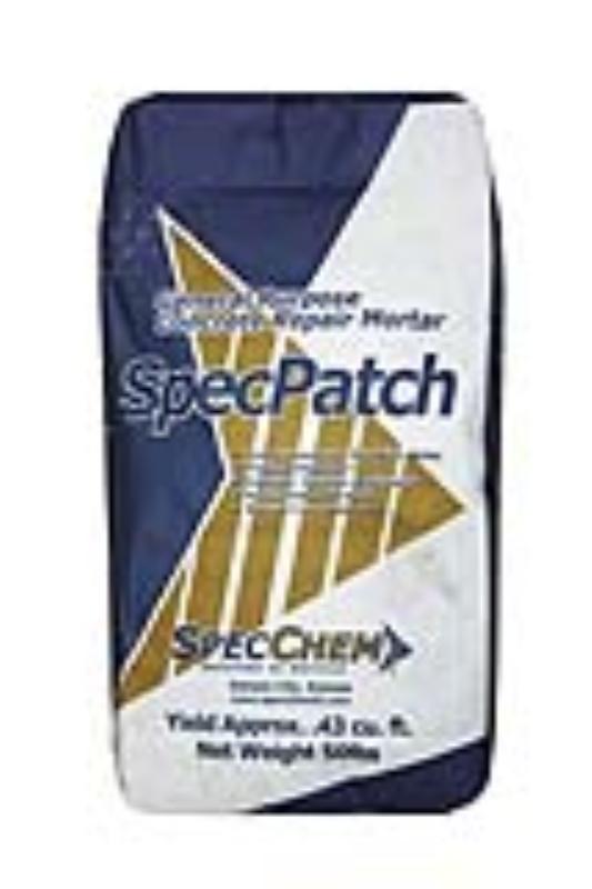 A single-component, cemetitious repair mortar designed for vertical, overhead and horizontal applications. Typical applications for SpecPatch include repairs to concrete pipes, columns, precast concrete, stairs and curbs, or any other general concrete repair.
