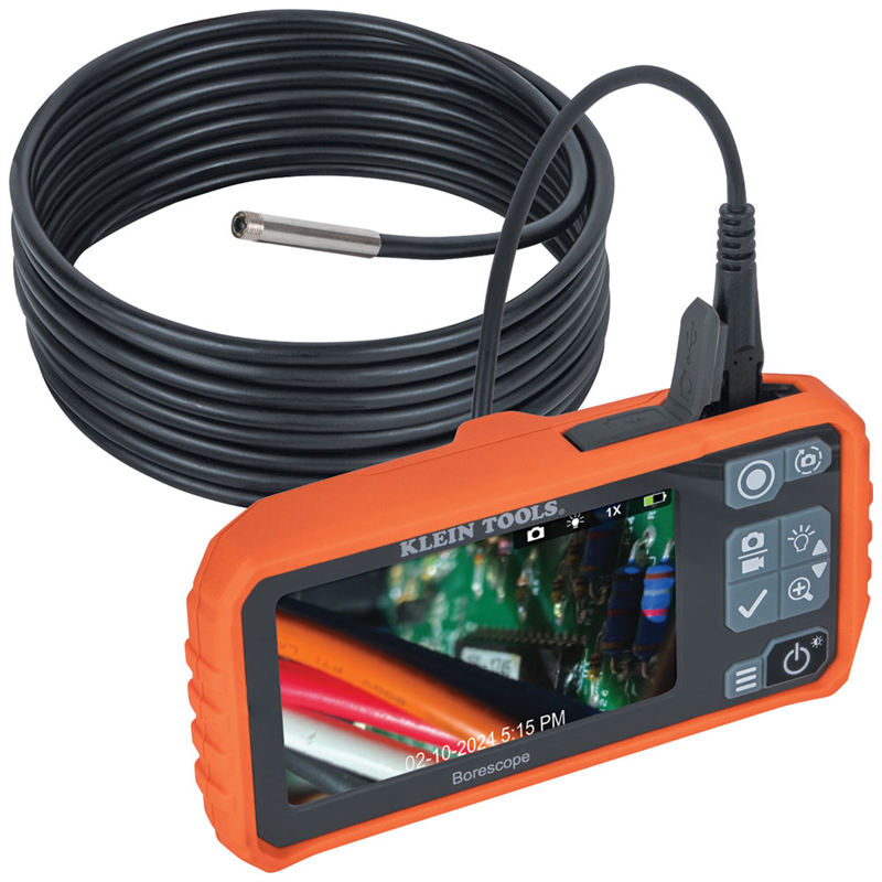 The Klein Tools Utility Borescope captures a clear view of hard-to-reach areas. It comes with a 10-Foot (3m) Nylon USB-C Detachable Snake, magnet, hook, and mirror attachments. It has an 5.5mm waterproof (IP67) camera with adjustable LEDs with 4 brightness levels. It features a 4.3-Inch Color LCD monitor with 854 x 480 resolution, 3 times zoom, and 180-Degree screen view rotation. You can view captured video/images on the display or transfer to your PC using the USB-C interface