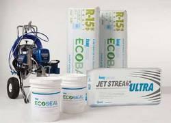 Knauf Insulation EcoSeal™, the latest technology in home energy solutions, is a fast drying, water-based elastomeric spray that seals penetrations and joints in the building envelope, including exterior walls, attics and floors. EcoSeal dries to a flexible tough film and has great bond strength with low odor and is extremely low in V.O.C’s. EcoSeal should be used with Knauf Insulation EcoBatts® or Knauf Premium Blowing Insulation. Together, they are known as the EcoSeal System. The EcoSeal system forms an effective, continuous and affordable air and thermal barrier for the building envelope.