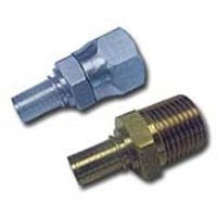 Permanent crimp or swage style couplings designed for SAE 100R14 PTFE hose. Brass or stainless steel.