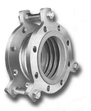 The construction of the Ultralon expansion joint utilizes a stainless steel, Inconel, Monel, or Hastelloy bellows in combination with a PTFE or FEP tube or lining formed into the bellows during manufacture. Ultralon expansion joints can offer working temperatures from -300°F to +400°F, and a choice of bellows rated for working pressures of 50, 150, or 300 psi. Gimbal, hinged, dual externally pressurized, and pressure balanced styles are construction options. Flanges are available in carbon steel, stainless steel, or Teflon coated. Ultralon expansion joints can be manufactured in custom overall lengths and in custom movement capabilities. Consult Unisource for information on the special construction you need for your application.