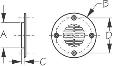 Designed to drain water from floors of bass, pontoon and other open deck boats. May also be used to vent lockers and refrigerator cabinets and also as a grille for enclosed horns and speakers.